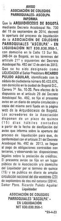 COMUNICADO 034AVISO ASOCIACIÓN DE COLEGIOS PARROQUIALES - ASCOLPA INFORMA
