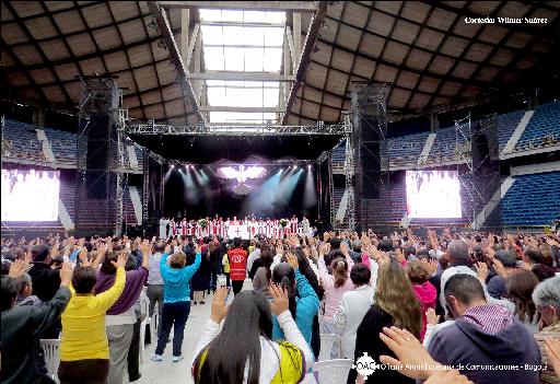 El pasado lunes festivo, miles de fieles celebraron la gran fiesta de preparación a Pentecostés para el domingo 6 de junio, en el Coliseo Cubierto el Campín. La Eucaristía de clausura fue presidida por el padre Diego Jaramillo Cuartas, presidente de la OMD y asesor de la RCC en Bogotá, junto a monseñor Joseph Malagreca y a más de una decena desacerdotes eudistas, diocesanos y de otras congregaciones que participaron en esta importante celebración.