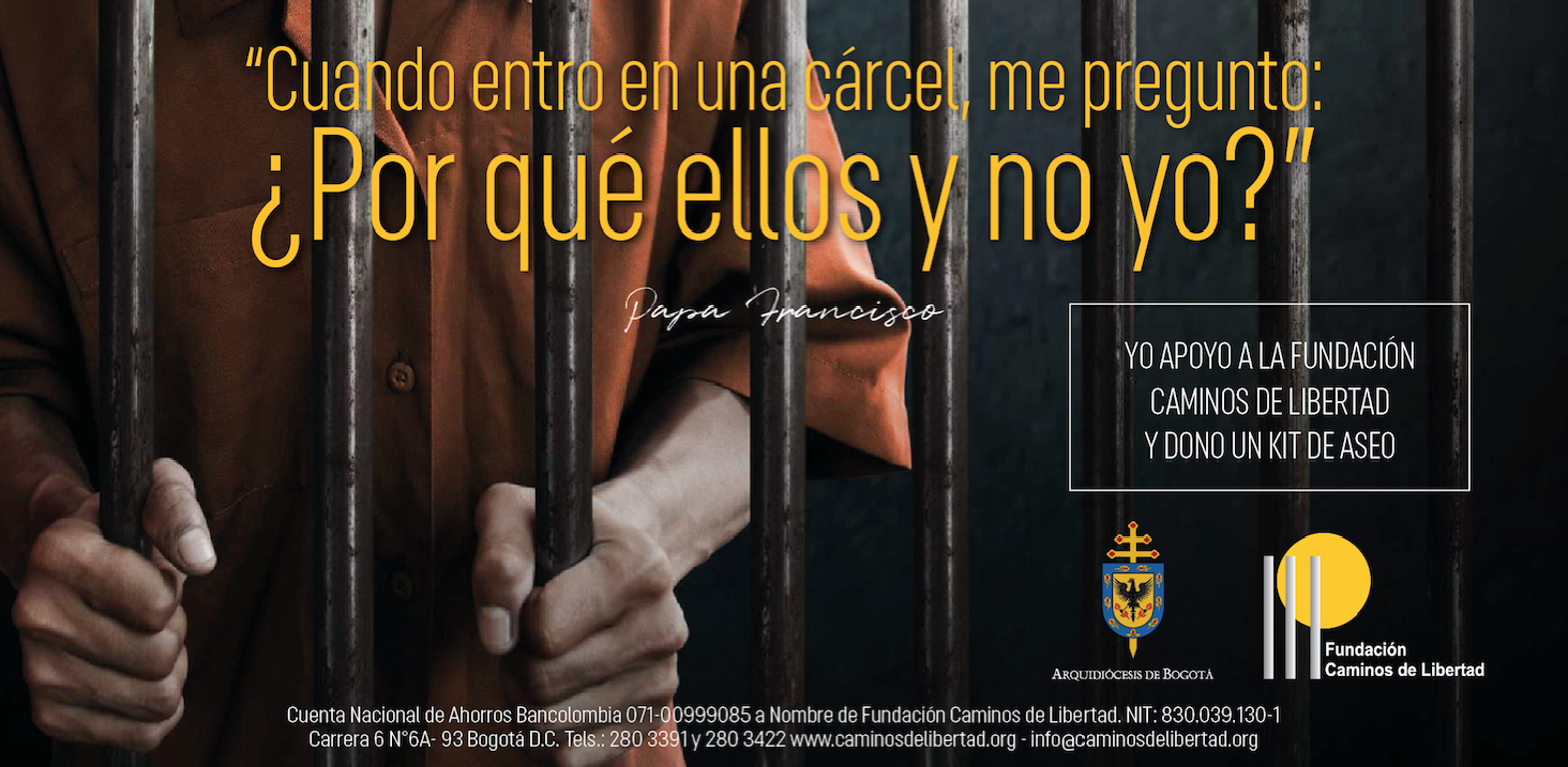 Centro de información Yo quiero Noticias Boletines Eventos Artículos Canonización Mensajes del Señor Cardenal Cartas pastorales Homilías Mensajes La voz del pastor Documentos del Vaticano NoticiasDonaciones kit de aseo - Fundación Caminos de Libertad9 de Septiembre de 2019Campaña realizada por la Fundación Caminos de Libertad, la cual consiste en entregar un kit de aseo a miles de internos de las cárceles de Bogotá Like 0 Dislike 0 Noticias relacionadas Ordenaciones en la Catedral Primada de Colombia Tiempo de preparación para la Navidad Video del papa - noviembre de 2025