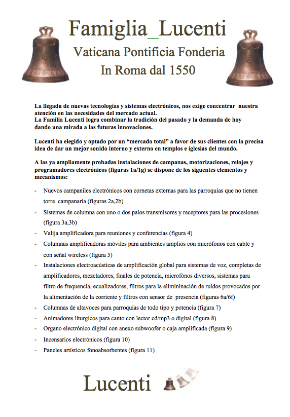1550 – Se termina de construir la primera campana fundida por las Fundiciones Lucenti, lacual se encuentra en la Iglesia de la Misericordia en el Convento de los Padres Capuchinos en Roma.