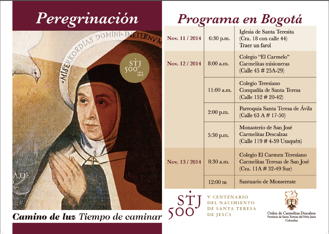Centro de información Yo quiero Noticias Oraciones Boletines Eventos Artículos Canonización Mensajes del Señor Cardenal Cartas pastorales Homilías Mensajes La voz del pastor Documentos del Vaticano NoticiasProgramación Visita de la Reliquia de Santa Teresa de Ávila a Bogotá12 de Noviembre de 2014Te invitamos a ver nuestro artículo: Desde España visita de la Reliquia de Santa Teresa de Ávila a Bogotá, haz click aqui. Like 0 Dislike 0 Noticias relacionadas Ordenaciones en la Catedral Primada de Colombia Tiempo de preparación para la Navidad Video del papa - noviembre de 2025
