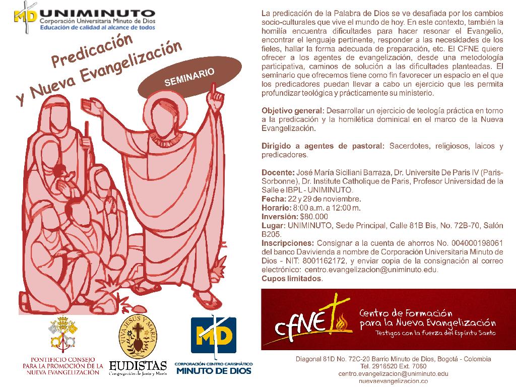 Centro de información Yo quiero Noticias Oraciones Boletines Eventos Artículos Canonización Mensajes del Señor Cardenal Cartas pastorales Homilías Mensajes La voz del pastor Documentos del Vaticano NoticiasSeminario - Predicación y Nueva Evangelización9 de Octubre de 2014 Like 0 Dislike 0 Noticias relacionadas Ordenaciones en la Catedral Primada de Colombia Tiempo de preparación para la Navidad Video del papa - noviembre de 2025